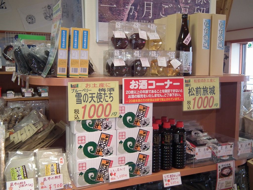 こちらが特産品センターです。スルメイカは当然ながら有るとして、昆布が大量に販売されていました。