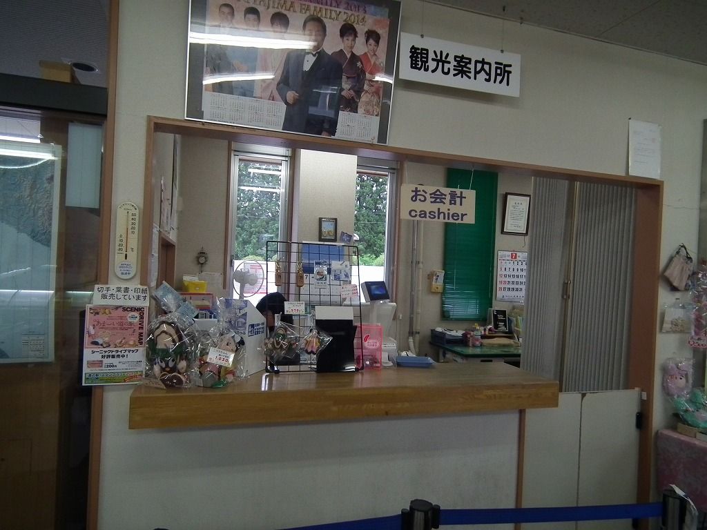 売店の中に入ってみました。入るとすぐにカウンターが有り、その狭さにビックリでした。美味しそうなソフトクリームが販売されていましたが、味は未確認です。